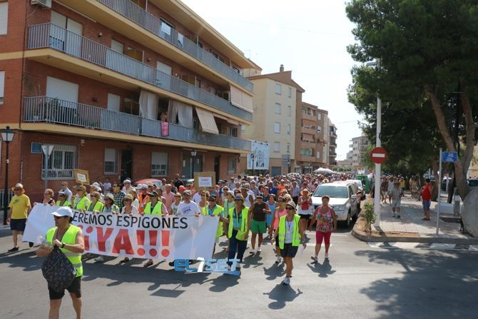 Alrededor de un millar de vecinos de las urbanizaciones en la zona de Les Amplaires de Oropesa del Mar se han manifestado este viernes 17 de julio por las calles de la localidad costera, en un recorrido que les ha llevado desde la urbanización de Marina d’Or hasta las puertas del Ayuntamiento de Oropesa del Mar.