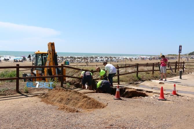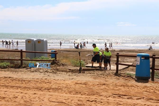 El Ayuntamiento de Alcalà de Xivert-Alcossebre trabaja desde la tarde del viernes 31 de julio para recuperar la normalidad en el núcleo costero después de las intensas lluvias caídas en la zona en las últimas horas. Efectivos de la brigada municipal de obras y de la empresa Tetma trabajan prioritariamente en la limpieza de viales y reparación de los accesos a las playas. Las tareas de limpieza se iniciaron en las zonas comerciales, al considerar desde el consistorio como prioritario la ayuda a los comercios y establecimientos, así como a los turistas que se encuentran veraneando en la localidad.