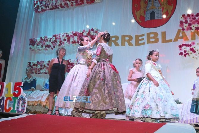 Las reinas 2014, Magali Casanova y Clara Cortés, hicieron su aparición sobre el escenario, acompañadas por la alcaldesa de Torreblanca, Josefa Tena que dirigió unas palabras a sus vecinos, en la que animo a participar en la fiesta y finalmente se realizó la imposición oficial de las coronas y bandas. Tras esto, las reinas salientes pronunciaron unos discursos de despedida llenos de emoción y agradecimientos por lo vivido en 2014.