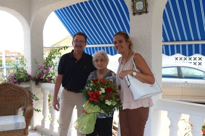 El alcalde, Francisco Juan Mars, y la concejala María Agut, visitaron a Francisca Bayarri en su domicilio para hacerle entrega de un ramo de flores y una placa conmemorativa en nombre de todos los vecinos y vecinas de la localidad, en la cual se podía leer la frase “Sin vosotros no seríamos los de hoy”.