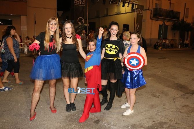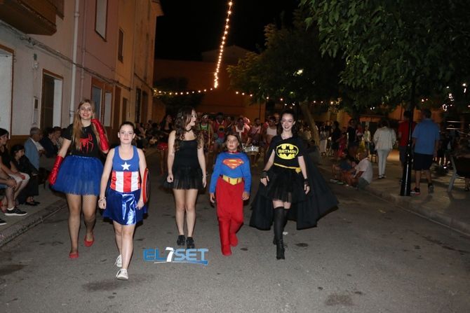 La Xaranga local y las Reinas y su Corte de Honor disfrazadas de superhéroes encabezaban el desfile, que venía seguido de hawaianas, médicos, hadas, futbolistas, o góticos.