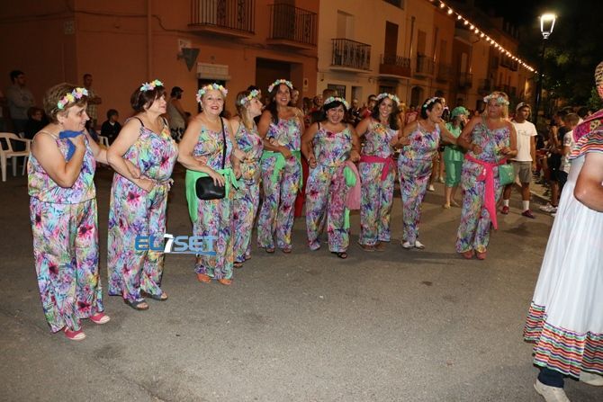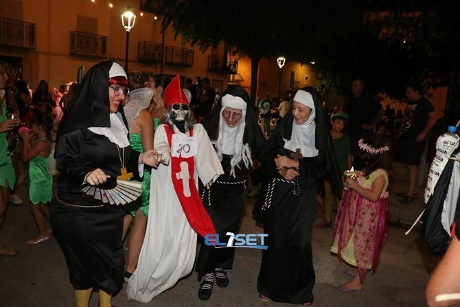 Los vecinos de Les Coves de Vinromà encaran la recta final de sus fiestas patronales con la noche de disfraces. La plaza Cervantes de la localidad fue el escenario del desfile de más de 50 collas y participantes individuales.