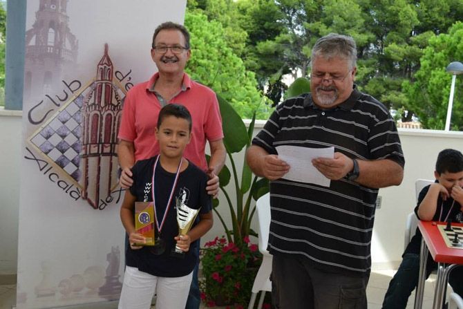 David Doñate irrumpió con fuerza en la escena del ajedrez de la comarca del Baix Maestrat en el 1er Open Internacional de Ajedrez Infantil Tomata de Penjar Alcalá Alcossebre. Y de nuevo en esta bella localidad se afianza y consolida con esta nueva victoria superando a rivales mayores que él en edad. Albert Robles está eclosionando y sin duda alguna será un gran jugador en un futuro no muy lejano. Y por último Rubén Vinuesa, que recibió 2 trofeos, uno que se le debía por un error de la organización y el de tercer clasificado de la XV edición del infantil de Alcossebre. Bravo Rubén.