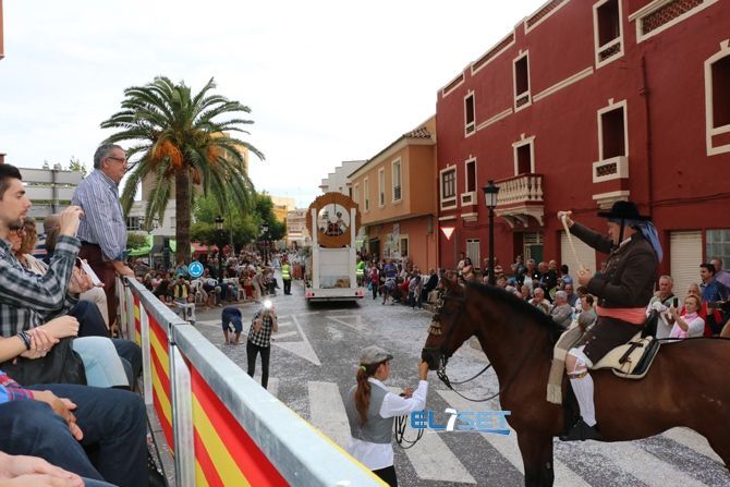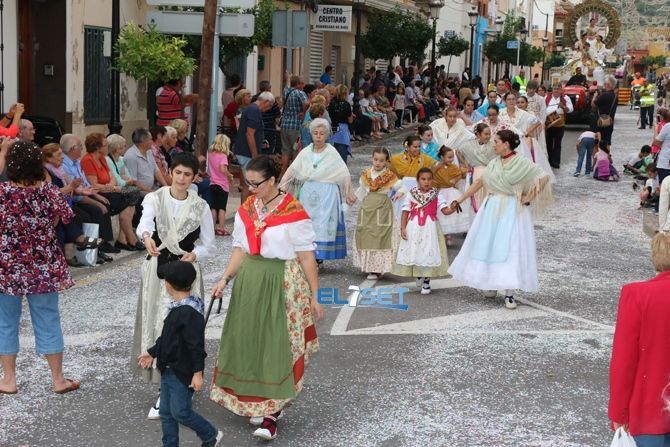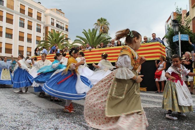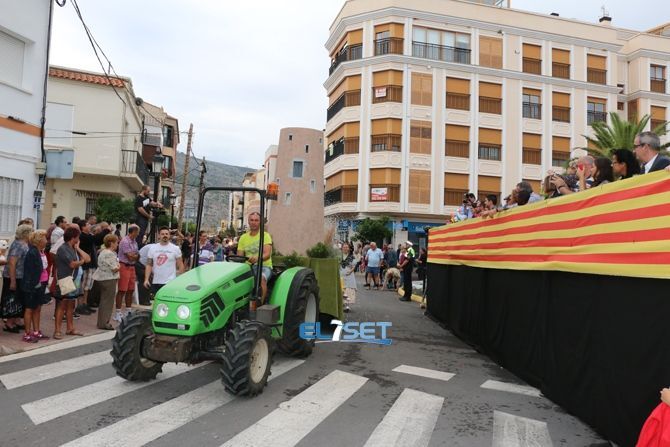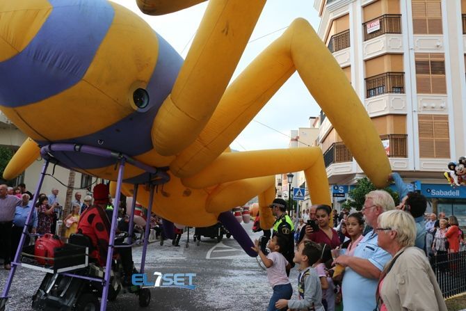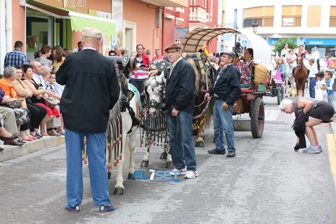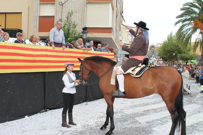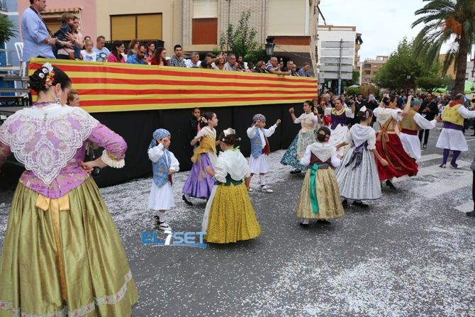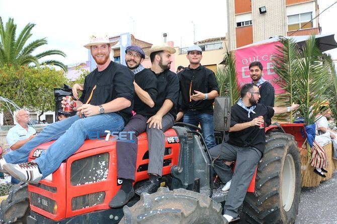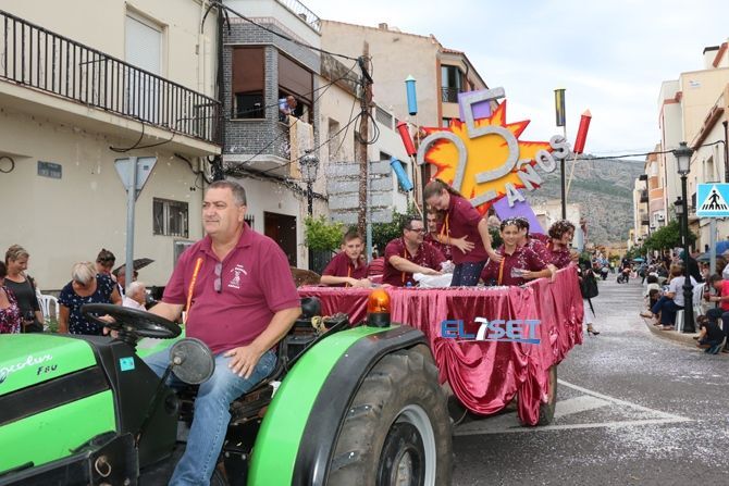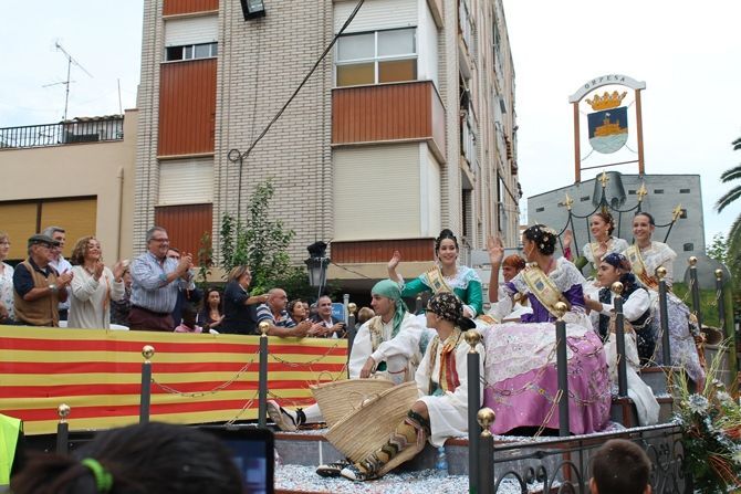 El desfile se ha iniciado con hinchables de animación y zancudos, que han dado paso a las agrupaciones de baile de plaza, carrozas, carros engalanados, caballos con adornos tradicionales y collas de dolçainers y tabaleters, venidas de diferentes lugares de la provincia.