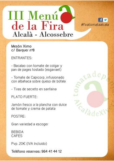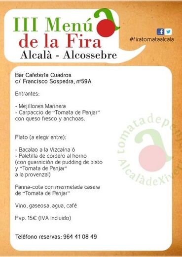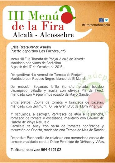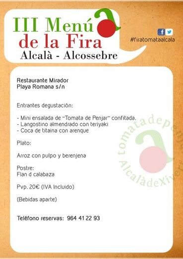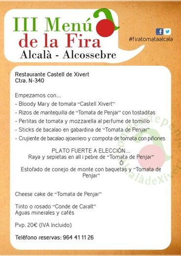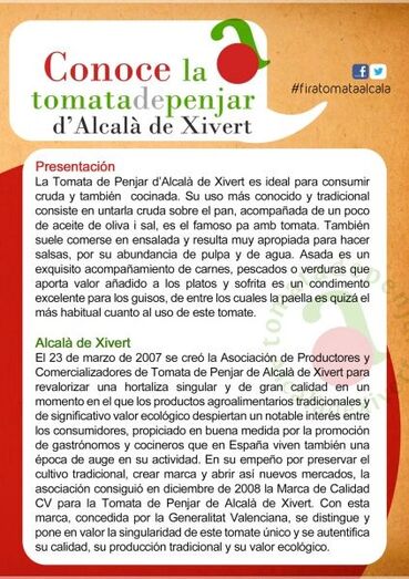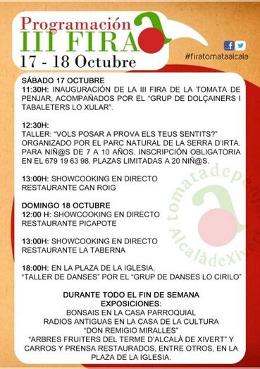 Alcalá de Xivert se prepara de cara a la celebración durante los días 17 y 18 de octubre de la III Fira de la Tomata de Penjar, una iniciativa nacida con el objetivo de promocionar este producto local, en un esfuerzo conjunto entre la Asociación de Productores y Comercializadores de Tomata de Penjar de Alcalà de Xivert, creada el 23 de marzo de 2007, y el Ayuntamiento de Alcalà de Xivert-Alcossebre.