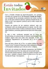 El alcalde de Alcalà de Xivert-Alcossebre, Francisco Juan Mars, destaca que “un año más organizamos la Fira de la tomata de Penjar, que ya en su corta vida es una cita importante en el municipio y en la provincia con un producto que nos da identidad. Esta feria nos expone a la provincia, llegan visitantes de muchos puntos y desde la organización y expositores todos se vuelcan para que se lleven el mejor recuerdo de la visita, vecinos y comercios se esfuerzan para superarse cada edición".
