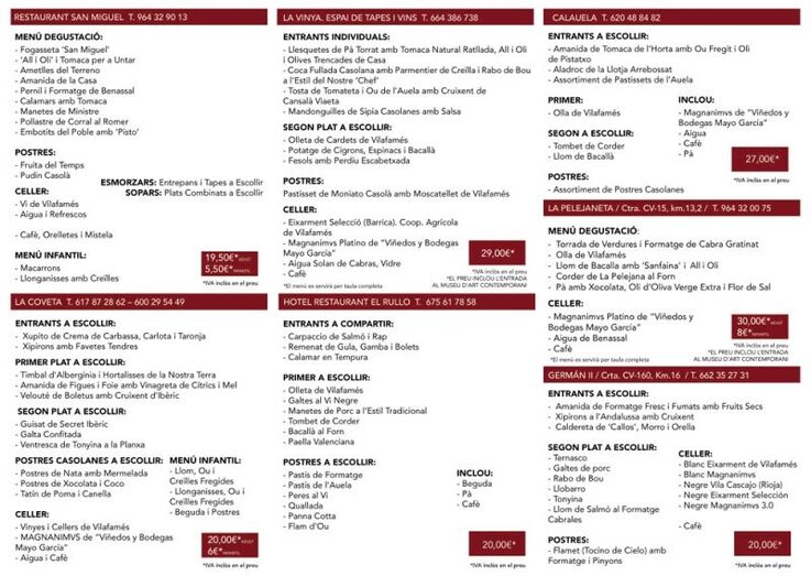 Els 8 establiments hostalers que oferiran menús especials, la responsable de l'oficina de turisme, l'alcalde de Vilafamés, Abel Ibáñez, i el regidor de Turisme, Lluís Torla, han presentat el cartell que inclou una programació carregada de novetats.