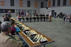 Tras 3 rondas se cierra la 1ª parte de este Campus. Entre tanto Eric Sos se dispone a dar una simultánea a 32 jugadores desde sub-8 hasta la absoluta. Eric Sos 23 años y vecino de Castellón que consiguió la 2ª norma en el reciente torneo FIDE de Alcossebre que le acreditará como MI tras conseguir la 3ª en el futuro. En esta simultánea liquidó la mitad de partidas en 1 hora, tras 2 horas solo cedió unas tablas a nuestro jugador local Juanma Lavérnia, y tras 3 horas cedió otras 2 tablas M. Alcover y E. Albalat, así pues 3 tablas 0 derrotas.