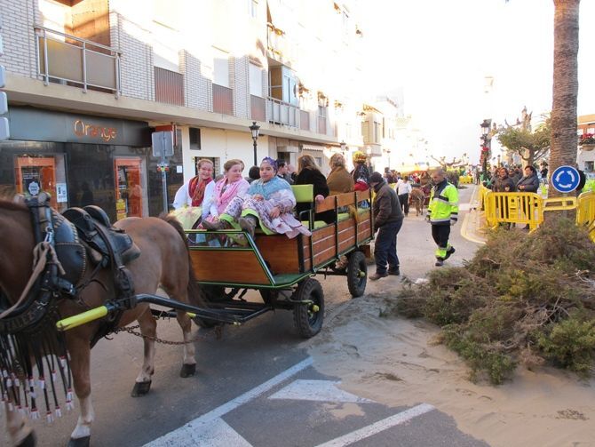 Estas ramas son arrastradas por los propios vecinos y por carros de caballos por el centro de la población hasta la plaza Mayor. El desfile, con el estandarte de Sant Antonio en la cabecera estuvo amenizado por el grupo de "Dolçainers i Tabaleters l'Embolic" y discurrió por la Avda. La Plana, la calle Pizarro, la calle Velázquez, Avda. de la Estación y finalmente la plaza Mayor donde l'Escola de Danses d'Orpesa ofreció una exhibición de bailes tradicionales ante todos los presentes.