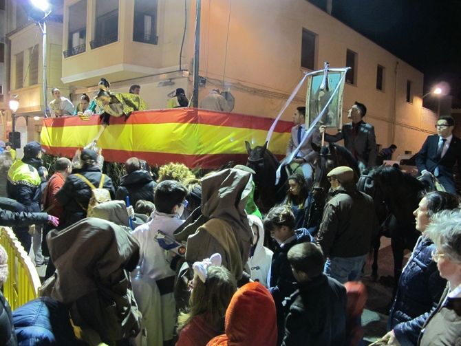 A las 20:00 horas se inció el acto principal de la festividad en honor al Santo. Una comitiva encabezada por el estandarte del Sant Antoni, en manos de un caballista, autoridades municipales y los vecinos acompañados de sus animales desfilaron hasta la parroquia de San Jaime para recibir la bendición.