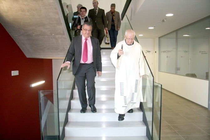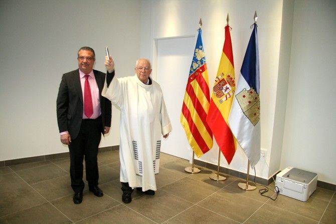 El párroco de Oropesa del Mar, mosén José Aguilella, ha bendecido hoy las instalaciones del nuevo Ayuntamiento de la localidad, situadas en la calle Laura Cervellón.