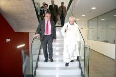 El sacerdote ha estado acompañado por el alcalde de la localidad, Rafael Albert, al frente de los miembros de la corporación local. El acto ha iniciado en el nuevo salón de plenos de la casa consistorial, para a continuación recorrer las diferentes dependencias municipales para ser rociadas con agua bendita.