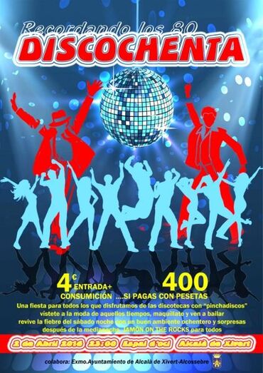There will be a themed party on Saturday 2nd April, entitled “Discochenta 2016” (Eighties Disco 2016), to raise funds to finance the journey to Llodio (Alava) which the Alcala Football Club is organising for its youth team.