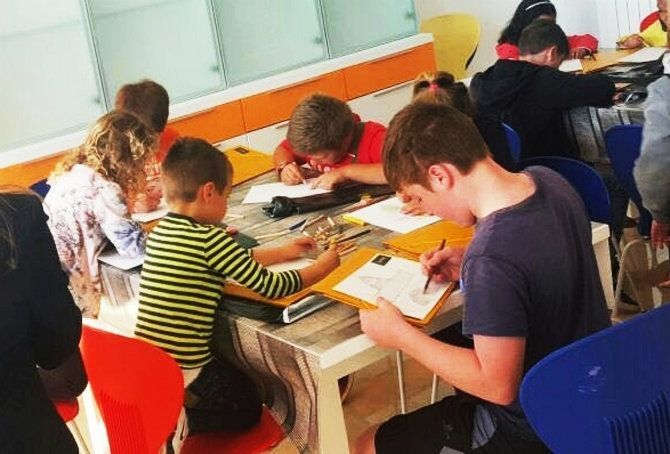 Más de 50 niños dan rienda suelta a su creatividad para plasmar en dibujos la romería y la ermita de Sant Cristòfol de Vall d’Alba