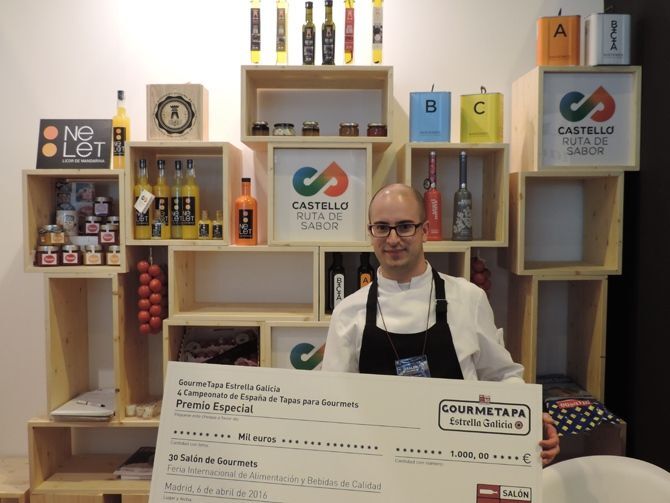 El chef torreblanquino Alejandro Tena ganador de I Ruta de la tapa Torreblanca, ha obtenido el premio especial a la mejor tapa cocinada con cerveza en el Salón del Gourmet que se ha celebrado esta semana en Madrid. Su "Canelón red vintage relleno de langostinos VO Vinaroz, alcachofas confitadas y cebolla caramelizada" convenció a un jurado que previamente había seleccionado a 25 finalistas de toda España.