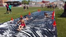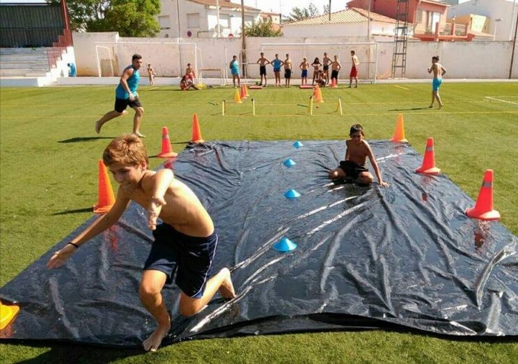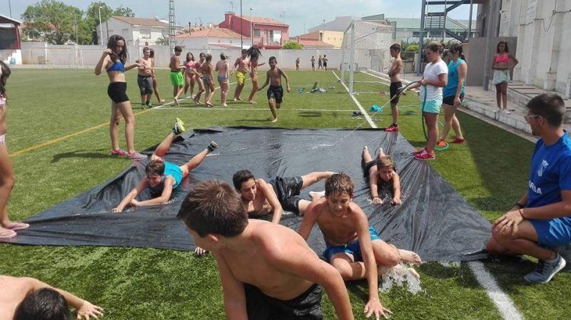 Sobre las 12:00 del mediodía venían los juegos preferidos de los pequeños con juegos de agua preparados para la ocasión por los monitores que hacían disfrutar y a la vez refrescarse a partes iguales con aspersores, toboganes, circuitos con agua.