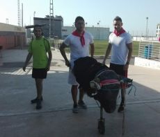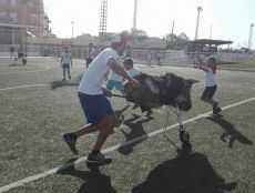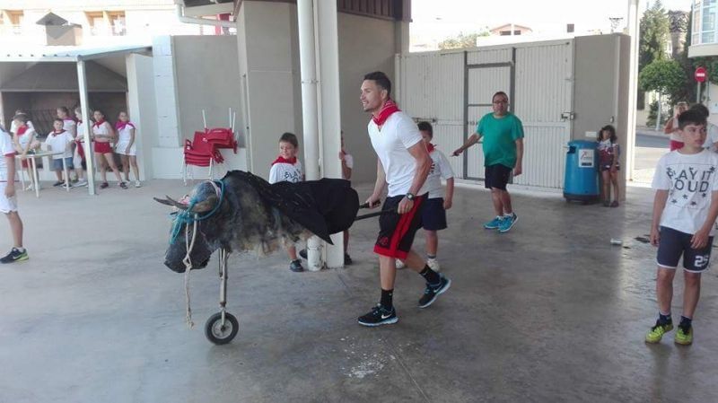 Pero lo bueno estaba por llegar en este fantástico viaje ya que el 7 de julio y para celebrar San Fermin se organizó un encierro en Bous de Carretilla en el que los 90 chavales que han participado en el Campus y ataviados de blanco con su pañuelo rojo se lo pasaron en grande con carreras muy bonitas y megafonia incluida.