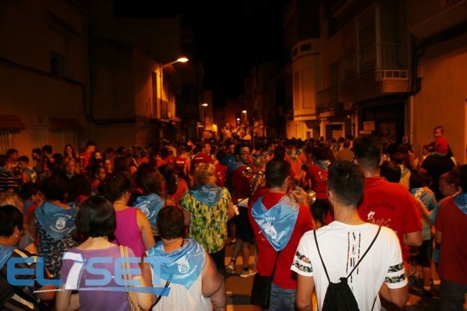 Ya por la noche multitud de collas se concentraron en la calle San Jaime para “La Crida”; en la que el patronato de fiestas repartió el pañuelo conmemorativo y una xaranga puso la música.