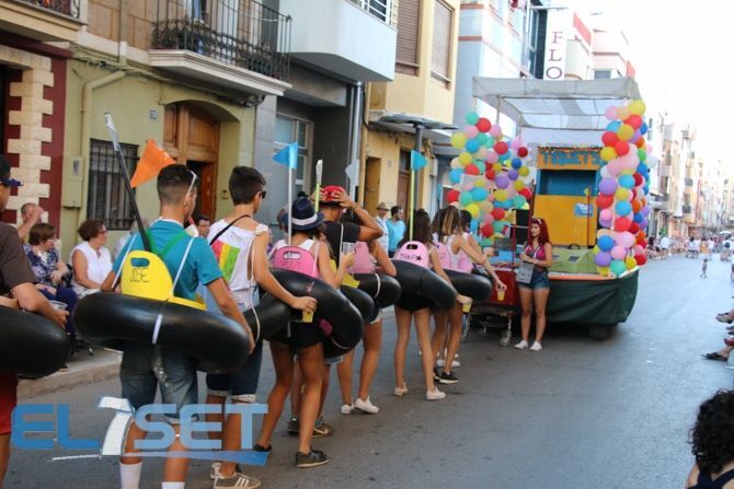[Img #51609]Las camisetas de colla, confeti,  globos y las originales carrozas dieron color al inicio de las fiestas de Torreblanca.