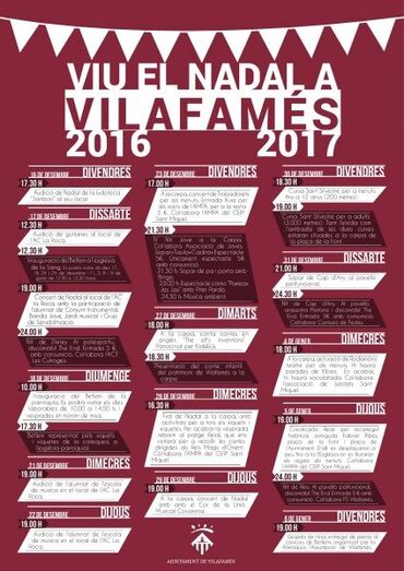[Img #53256]La regidoria de Festes de l'Ajuntament de Vilafamés ha presentat l'agenda nadalenca. Es tracta “d'una completa programació que compta amb la col·laboració de nombroses associacions del municipi i que busca que els veïns de Vilafamés i els visitants tinguen una oferta variada passar estes dates al poble", segons ha definit el regidor de Festes, Sergi Trilles .