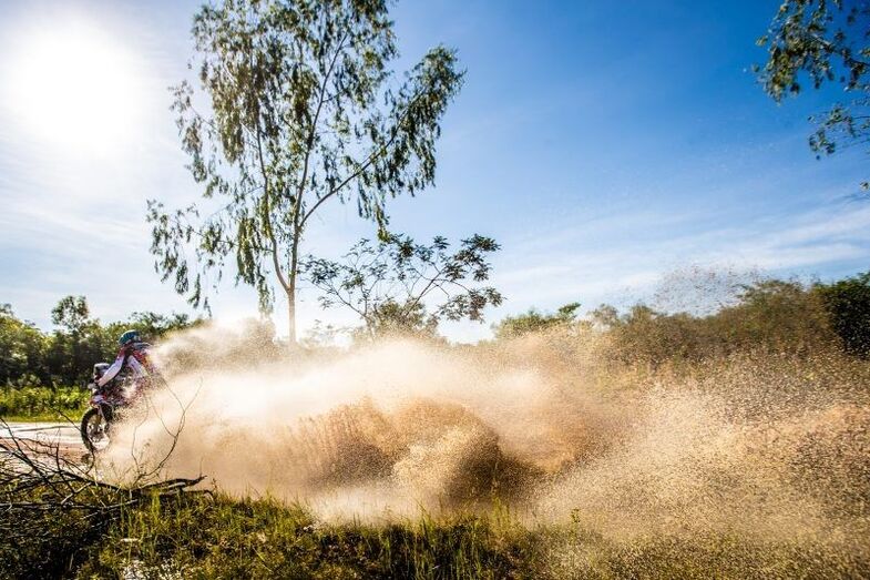 El enlace era muy difícil. Han sido 354 kilómetros y la especial ¡de sólo 39 km! Creo que hoy fue un poco un shakedown para los pilotos, las máquinas y los equipos; la carrera no ha comenzado todavía. Mañana creo que será diferente: la humedad y el calor aquí son insanos: caminas treinta segundos y piensas que te estás derritiendo. Todo esto está tomando su peaje en el cuerpo y, por supuesto, en las motos también. El calor es un factor muy importante. Todo se reducirá a ahorrar fuerzas y salvar la máquina para atravesar el calor extremo y la altura.
