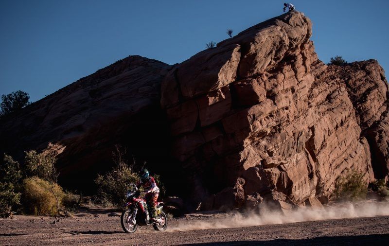 Joan Barreda ha abierto pista durante toda la jornada, desde inicio a fin, con una navegación prácticamente impecable y tan sólo con un pequeño desvío sobre el kilómetro 53 de especial de esta décima jornada en la que ha tenido la ayuda de su compañero Michael Metge, que le ha confirmado la posición correcta y el rumbo a seguir. Ambos, con la Honda CRF450 RALLY, han mantenido la cabeza de la jornada hasta llegar a la meta de San Juan. Metge ha logrado el mejor tiempo del día, consiguiendo así su primer triunfo de etapa en el Rally Dakar, aunque más tarde la organización le ha penalizado por omitir un ‘waypoint’. En estos momentos están revisando el recorrido del piloto francés.