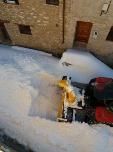 Castellfort sigue haciendo frente a la nieve y el hielo. Con la ayuda de un tractor de un vecino de la localidad y una maquina aspiradora del Consorcio de Bomberos se está aspirando la nieve en las calles para abrir un paso para los vecinos. Esta misma máquina se ha utilizado en la apertura de caminos de pistas y granjas.