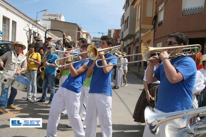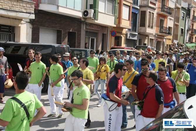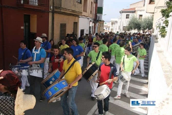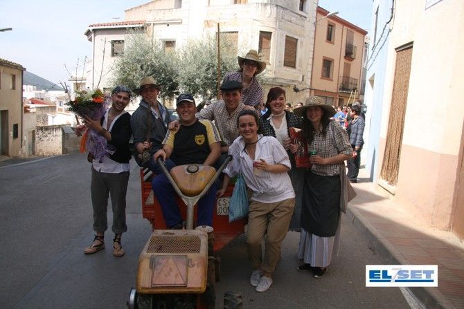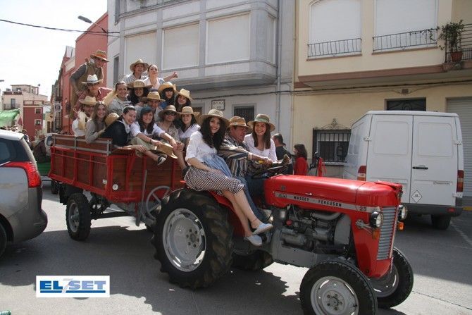 Los jóvenes participantes desfilaron sobre carros, motocultores y a pie por las calles de Cabanes, que se llenaron de curiosos para contemplar la colorida comitiva. El recorrido estuvo amenizado por varias charangas de la comarca, compuestas por músicos de Les Coves, Vilafamés o Salzadella, entre otras localidades.