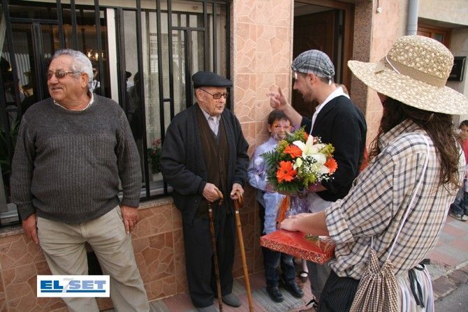 El desfile tuvo dos paradas importantes, en las que la Asociación de Jóvenes de Cabanes regaló un ramo de flores y una caja de bombones a las dos personas más mayores de la localidad, Daniel Bou, de 99 años de edad, y a Consuelo Valls, de 100 años recién cumplidos.