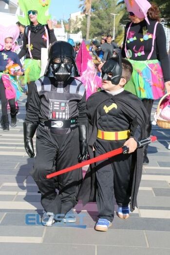 Por la tarde el desfile más divertido corrió a cargo de príncipes, superhéroes, roqueros y una gran parte de los protagonistas de los dibujos de la tele. Niños y padres desfilaron por las calles de la localidad con gran ritmo.