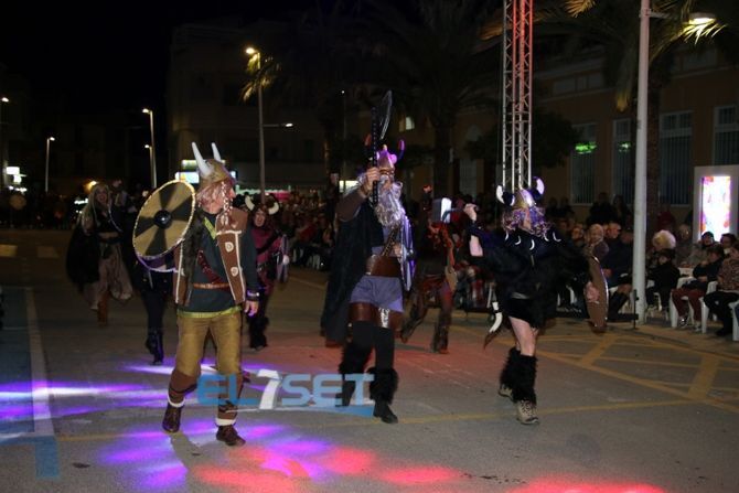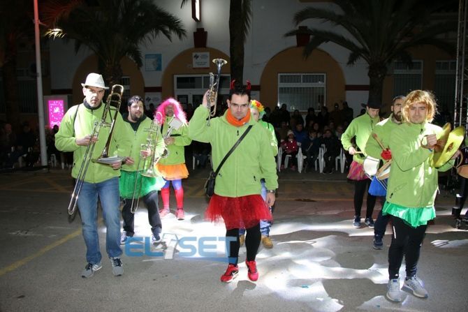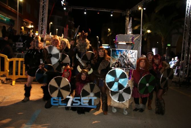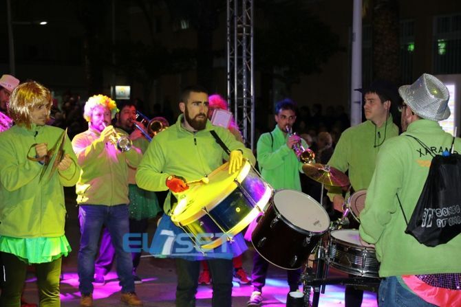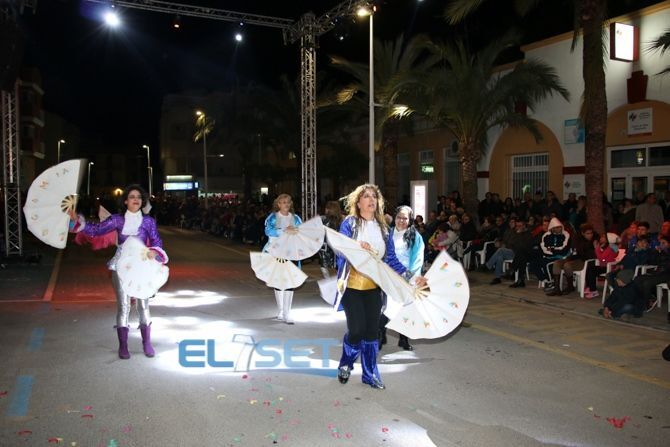 El gran desfile llegó con la noche. Ya se dice que el carnaval de Alcossebre es especial; Las collas de la localidad y agrupaciones de poblaciones cercanas de unen en una gran fiesta. El desfile brilló gracias a las toneladas de purpurina y plumas de los disfraces; todo ello combinado con música y elaboradas coreografías. El epicentro de la fiesta en un primer lugar fue el sambodromo, con un dj en directo, y seguidamente en la carpa instalada por el Ayuntamiento para la ocasión.