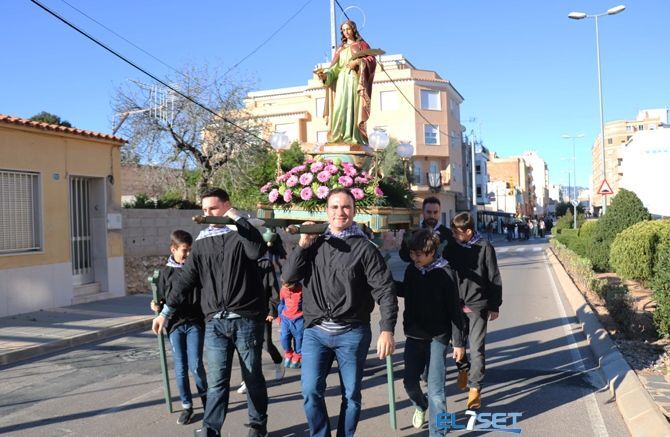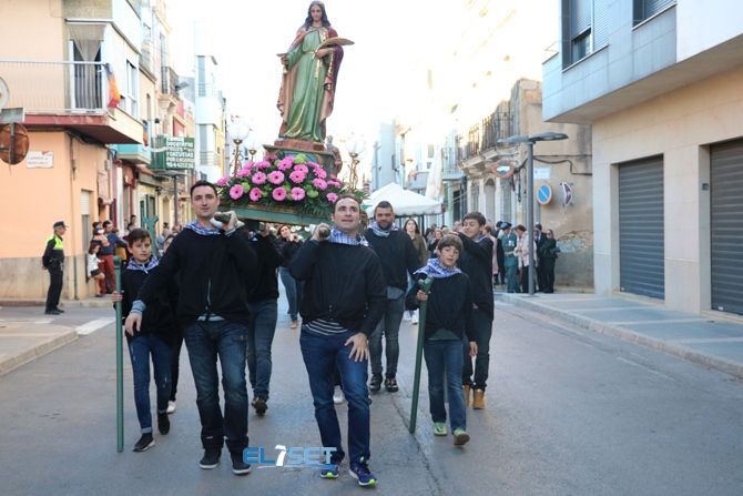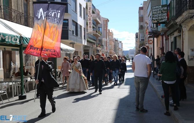 Seguidamente tuvo lugar un pasacalle que ha recorrido las calles que albergarán la fiesta el año que viene, el cual estuvo encabezado por la bandera que decora los balcones de los vecinos participantes en las fiestas seguidos por los caballos y el estandarte con la imagen de Sant Antoni y Santa Lucia. También acompañaron a la comitiva vecinos ataviados con trajes tradicionales, la música de la dolçaina y el tabal de “El Senill”, el grupo de danzas "L'Aljub" , las Reinas de las Fiestas acompañadas por su Corte de Honor, así como las autoridades locales y cerrando el desfile la Unión Musical Torreblanca.