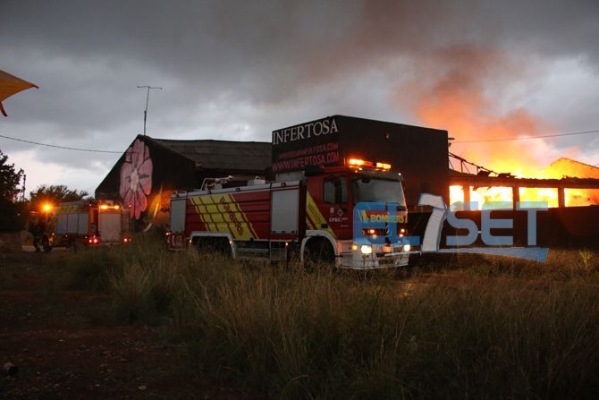 Un espectacular incendio se declaraba alrededor de las 19:00 horas de este martes en una nave industrial de la empresa Infertosa, en la partida 11 del término municipal de Torreblanca, frente a la estación del ferrocarril. Las llamas han consumido por completo el techo de la edificación, aunque la estructura aún no revestía grandes daños a primera hora de la noche.