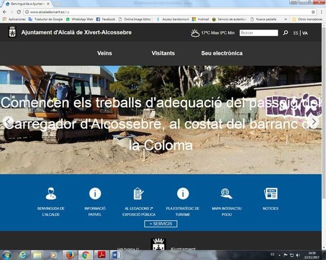 The Alcala-Alcossebre Council web site, www.alcaladexivert.es, has a new image which has now been finalised. The new web page, which was set up last year, is very similar to the original version although now the Main Menu colouring has been changed and has been improved making different sections more easily accessed with more space for pictures and simpler graphics. The web page has a Main Menu from which the Residents-Visitors-Electronic Base can be accessed. Using the Main Menu, direct access can be obtained to information about the El Campaner industrial park, the Municipal Cardioprotected map, Notices, Diary, Duty Chemists, Bus and Train Timetables, etc. All the information on the web appears in Spanish and Valencian, with the desired language chosen from the Main Menu. The web can be seen and consulted perfectly on mobile devices as it has been formatted specially for this purpose.