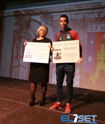 En el acto de presentación el club entregó reconocimientos a los patrocinadores de las distintas categorías, así como al Ayuntamiento de Alcalà de Xivert-Alcossebre, los ex presidentes del club Vicente Esteve Ureña y Francisco Esteller Marín, Asamblea Local de Cruz Roja (recogido por el coordinador Germán Hernández Somoza), además de presentarse las dos placas que se instalarán en el campo del C.F. Alcalà para reconocer a título póstumo la labor por el club de Bautista Adell Vaquer “Batistet” y Vicente Vinuesa Piñol “Carreró”.