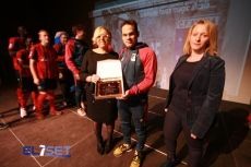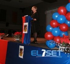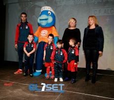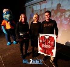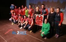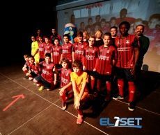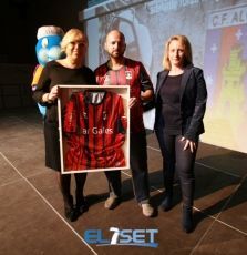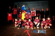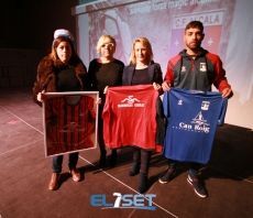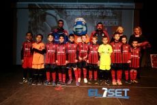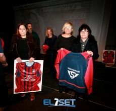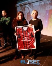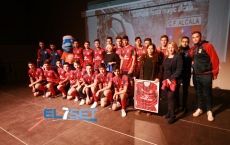 Los distintos equipos fueron pasando por el escenario para presentarse ante su público, en compañía de la presidenta, Mª Carmen Arnau, la vicepresidenta, Noelia Bruñó, y el coordinador del fútbol base, Gabi Navarro, acompañados también por Delfi, la mascota de Hotel Servigrup Romana, patrocinador del club.