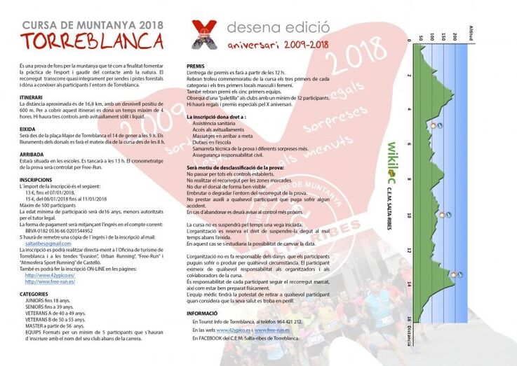 Torreblanca reunirá a más de 300 participantes en la X Cursa de Muntanya, evento organizado por el Club de Montaña Salta-Ribes con la colaboración de la Concejalía de Deportes que se celebrará el próximo domingo 14 de enero con el objetivo de fomentar la práctica deportiva.