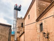 Cabanes col·labora amb el consorci de bombers en la neteja del campanar