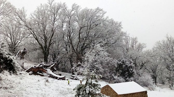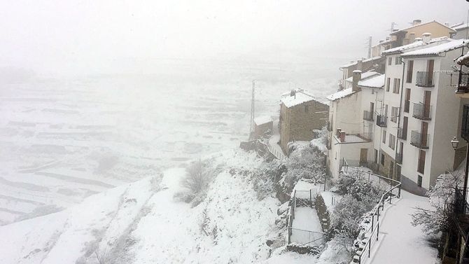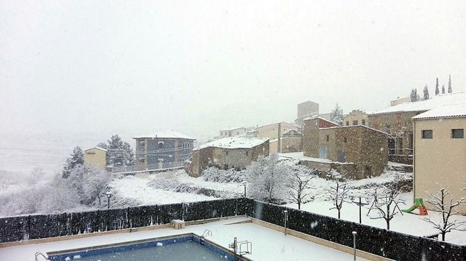 Desde ayer domingo el interior de la provincia de Castellón está cubierto de un manto blanco por el temporal de nieve que está azotando toda la península. El tiempo, según las previsiones meteorológicas de Aemet, no mejorará en los próximos días, por lo que se mantiene la preemergencia de nevadas nivel naranja en el interior de la provincia de Castellón.