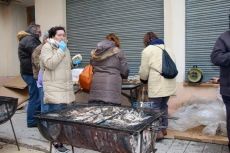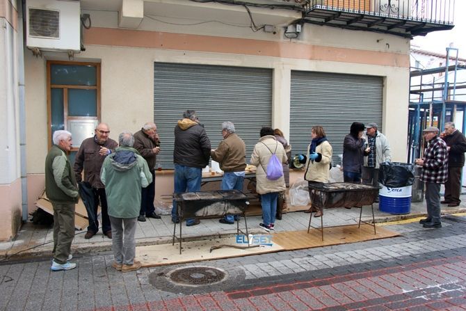 Aunque a primera hora pocos eran los desafiaban las inclemencias del tiempo, en cuanto Toni y sus ayudantes pudieron encender la leña para lograr unas buenas brasas en las que asar las sardinas, el número de montadores de los cadafales fue creciendo exponencialmente en la Plaza Mayor del municipio. Cuando más intensa era la nevada más vecinos abandonaban el refugio de sus hogares o de los bares próximos en los que habían almorzado para emplearse a fondo en la construcción del recinto taurino.