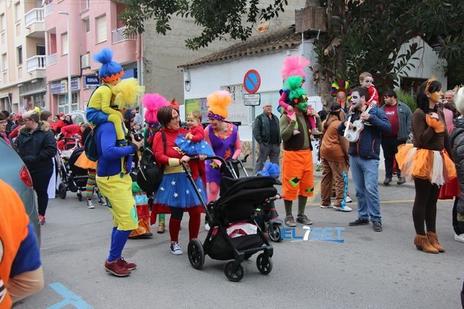 Al ritmo de la charanga y con la animación del grupo de zancudos Alcozancos, la gran comitiva inundó de personajes de los dibujos animados, superhéroes y animales de todo tipo la localidad, en una cabalgata de diversión que estuvo presidida por la Reina Infantil del Carnaval, África Marín Seijas, quien presidió el desfile en su carroza, acompañada por una comitiva de elfos y hadas.