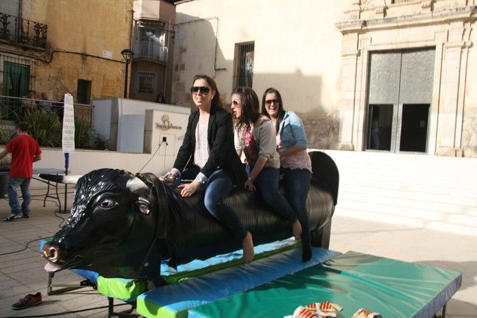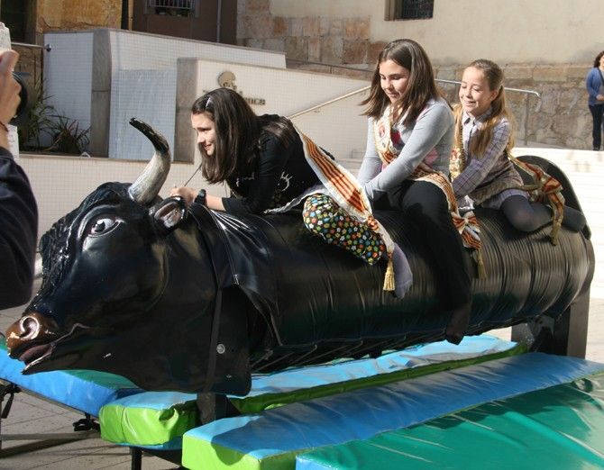 Los más pequeños disfrutaron de actividades, con juegos, colchonetas, globoflexia o un desafiante toro mecánico, que no asustó a las Reinas y Damas de las fiestas durante su visita a la Feria del Libro, que previamente habían inaugurado junto a la concejala de Cultura, Inma Segura.