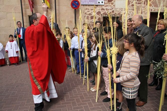 Vilafamés ha celebrado esta mañana la bendición de los ramos, el acto que marca el punto de partida de la Semana Santa en la localidad de la Plana Alta. Decenas de personas han participado de este acto que se ha llevado a cabo en la plaza del Ayuntamiento. Inmediatamente después, se ha iniciado la procesión que ha finalizado a la iglesia de la Asunción, donde se ha celebrado la Misa del Domingo de Ramos.