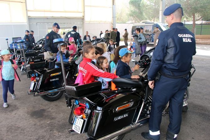En el Recinto Multiusos, alumnos de entre 4 y 6 años de edad de los colegios La Mediterrània y Deán Martí, visitaron la exposición preparada por la Guardia Real para dar a conocer algunos de los aspectos del servicio que prestan a la Casa Real. En este espacio pudieron conocer las espectaculares motos de escolta, Harley Davidson, en las que los pequeños pudieron incluso subirse y probar sus sirenas.