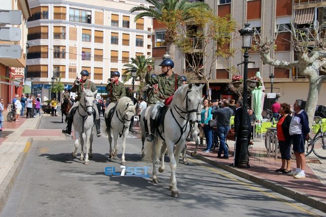 Más tarde, la escolta y banda de guerra a caballo de la Guardia Real recorrió las calles de Oropesa del Mar, pasando por el ayuntamiento de la localidad, donde fueron recibidos por las autoridades locales, con el alcalde Rafael Albert a la cabeza. A la llegada de la comitiva, la capitana Rivera entregó al primer edil dos recuerdos de la visita de la Guardia Real a la localidad, una fotografía y un escudo, mientras que Albert hizo entrega de un escudo de Oropesa del Mar.