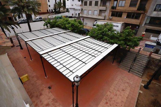 El Ayuntamiento de Vilafamés ha instalado una carpa fija en la plaza Ferrer Forns, con el objetivo de dar sombra en un espacio que es utilizado de forma habitual por los vecinos para momentos de recreo y ocio. Las obras, contempladas en el presupuesto de este año, han sido realizadas por empresas locales y han tenido un coste de 22.800 euros.