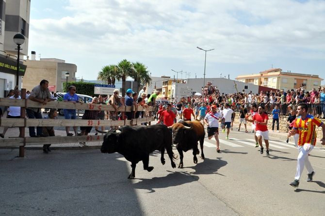 Pocos minutos después del mediodía, y tras el disparo de los tres cohetes reglamentarios, los toros ‘Andarín’, ‘Soguero’, ‘Tembloroso’, ‘Peluquín’, ‘Avanto’ y ‘Tramojoso’, del hierro de Medina Sidonia (Cádiz); emprendieron carrera a toda velocidad, desde el corro, ubicado en la calle Mayor. Desde ahí, y en un circuito, de casi un kilómetro, que cuenta con puntos de gran rapidez y visibilidad, como la recta de más de 800 metros coincidiendo con la avenida Castelló; los seis astados demostraron su casta, mientras que los mozos exhibieron su valentía, corriendo delante de los animales y protagonizando escenas de gran emoción.