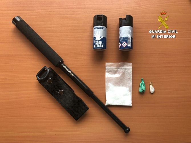 Como resultado del registro efectuado se intervinieron, además de las 100 plantas anteriormente citadas, 03 envoltorios plásticos conteniendo nueve gramos de una sustancia blanca, supuestamente cocaína y metanfetamina, 275 euros en efectivo, dos sprays de defensa personal, una defensa extensible, diferentes sustancias químicas para el crecimiento, floración y mantenimiento de las plantas, equipos de iluminación, termostatos, filtros, equipos de ventilación, dos rollos de film para envolver los cogollos y una balanza de precisión presuntamente utilizada para la distribución del cannabis.