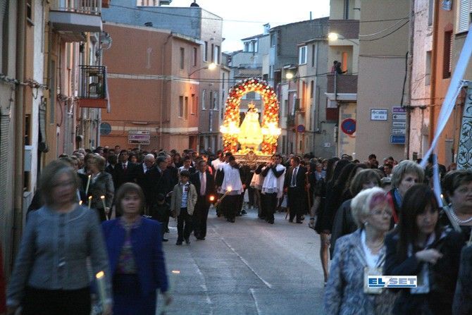 La tarde fue el momento más emotivo del día. A las nueve de la noche, la Barranquera, como se la conoce cariñosamente en el pueblo, hacía su entrada en Cabanes procedente del Calvario. Allí la esperaban la corporación municipal, encabezada por el alcalde Francisco Artola, que este año vive sus primeras fiestas de mayo como primera autoridad. En la iglesia tuvo lugar la emotiva ofrenda de flores con la que la población recibe a su Virgen. La Mare de Déu permanecerá en la iglesia Parroquial de San Juan Bautista hasta el último fin de semana de mayo, cuando volverá a Les Santes coincidiendo con la Pascua de Pentecostés.![[Img #7143]](upload/img/periodico/img_7143.jpg)