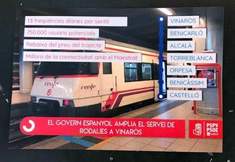 Los populares recuerdan que "el PSOE votó en contra del presupuesto que el PP había contemplado para triplicar las frecuencias y ha retrasado la puesta en marcha para atribuirse una mejora que ha puesto en marcha el Partido Popular". “Los trenes han llegado a pesar del Partido Socialista y el Maestrat se ha sudido en este tren impulsado por el PP” lo que supone “un triunfo para los vecinos de Vinaròs y el resto de municipios que ven cómo se pasa de cuatro a doce los trenes en cada sentido”.
